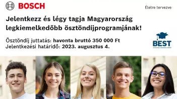 Ennek jegyében indította el az úgynevezett BEST – Bosch Engineering Scholarship Team – Ösztöndíjprogramot, mely lehetőséget biztosít ambiciózus, kiemelkedő szakmai és tanulmányi háttérrel rendelkező mesterképzés előtt álló/mesterképzésük első félévét végző diákoknak, hogy a lehető legtöbbet hozzák ki tanulmányaikból.